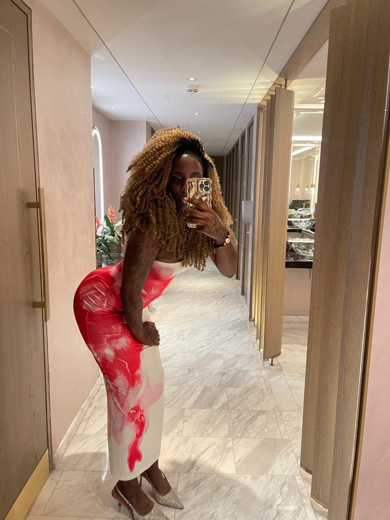 DRESS SIZE : UK 8. I’m a 34B and a natural body.